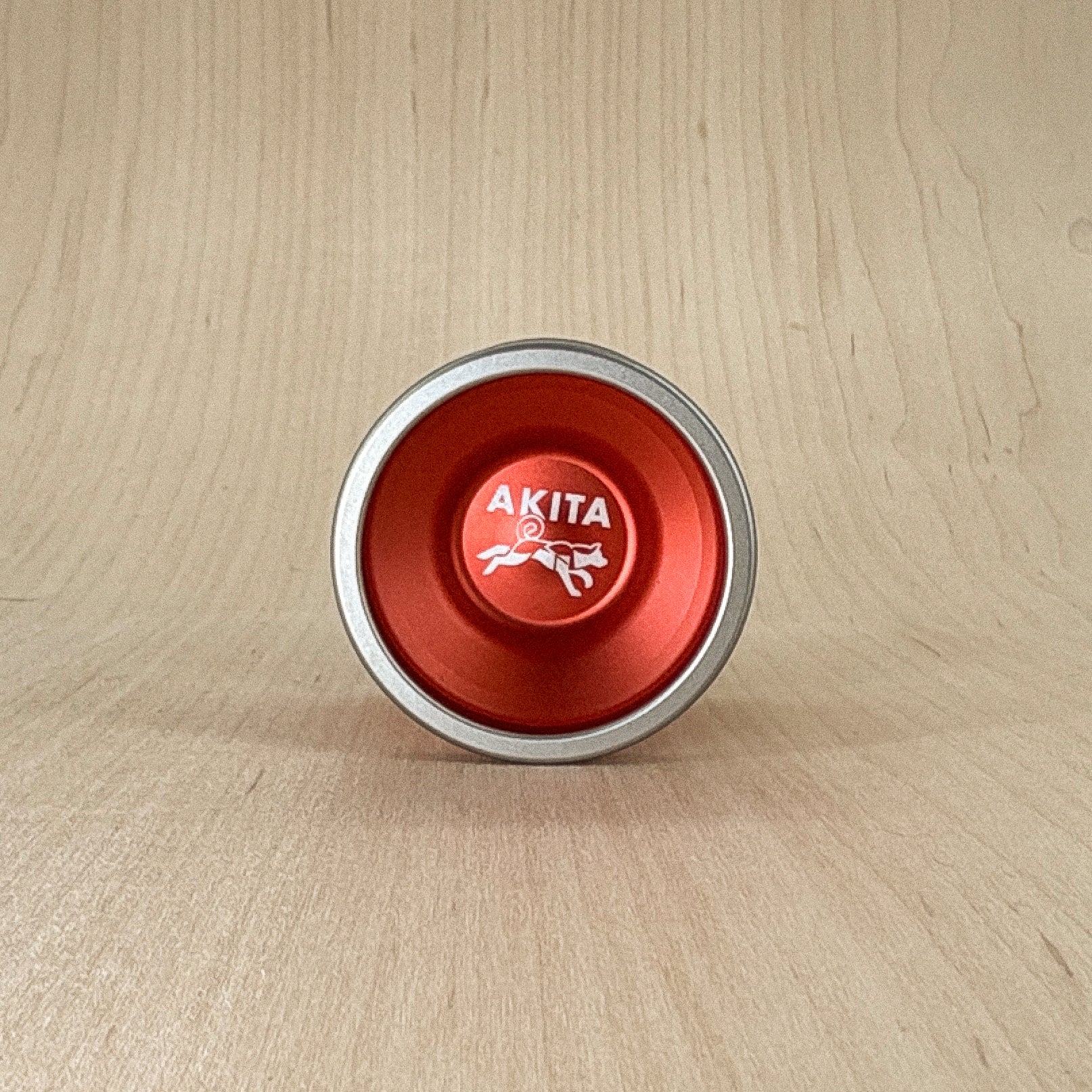 For this second iteration of the Akita, we turned to our friends at SUS YOYO MECHANICS in Japan and they delivered a true reimagining. The hub area is organic and streamlined, reducing center weight and offering a sleek new look. The steel weight rings have been moved from internal to external to increase spin time and stability, and have a blasted finish to keep friction to a minimum when the yoyo touches your hands. The rim profile narrowed slightly but remains comfortable, and the gap profile has been narrowed out to further push weight to the rims and improve horizontal play. Every millimeter of the new Akita has been reconsidered to optimize play while keeping a comfortable feel in the hand.